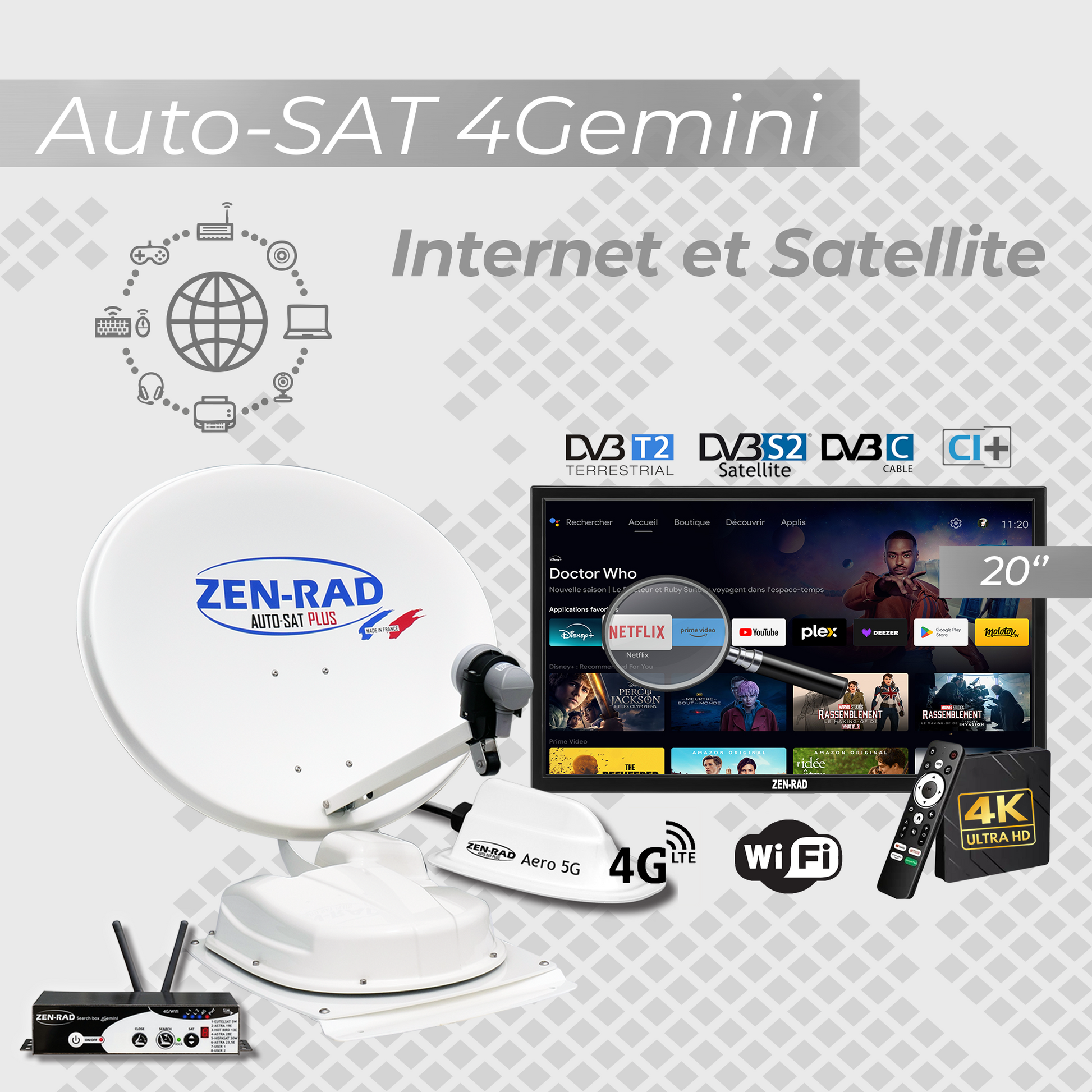 đ·ïž Pack TV Media Antenne satellite automatique + Internet - AUTO-SAT 4Gemini 60